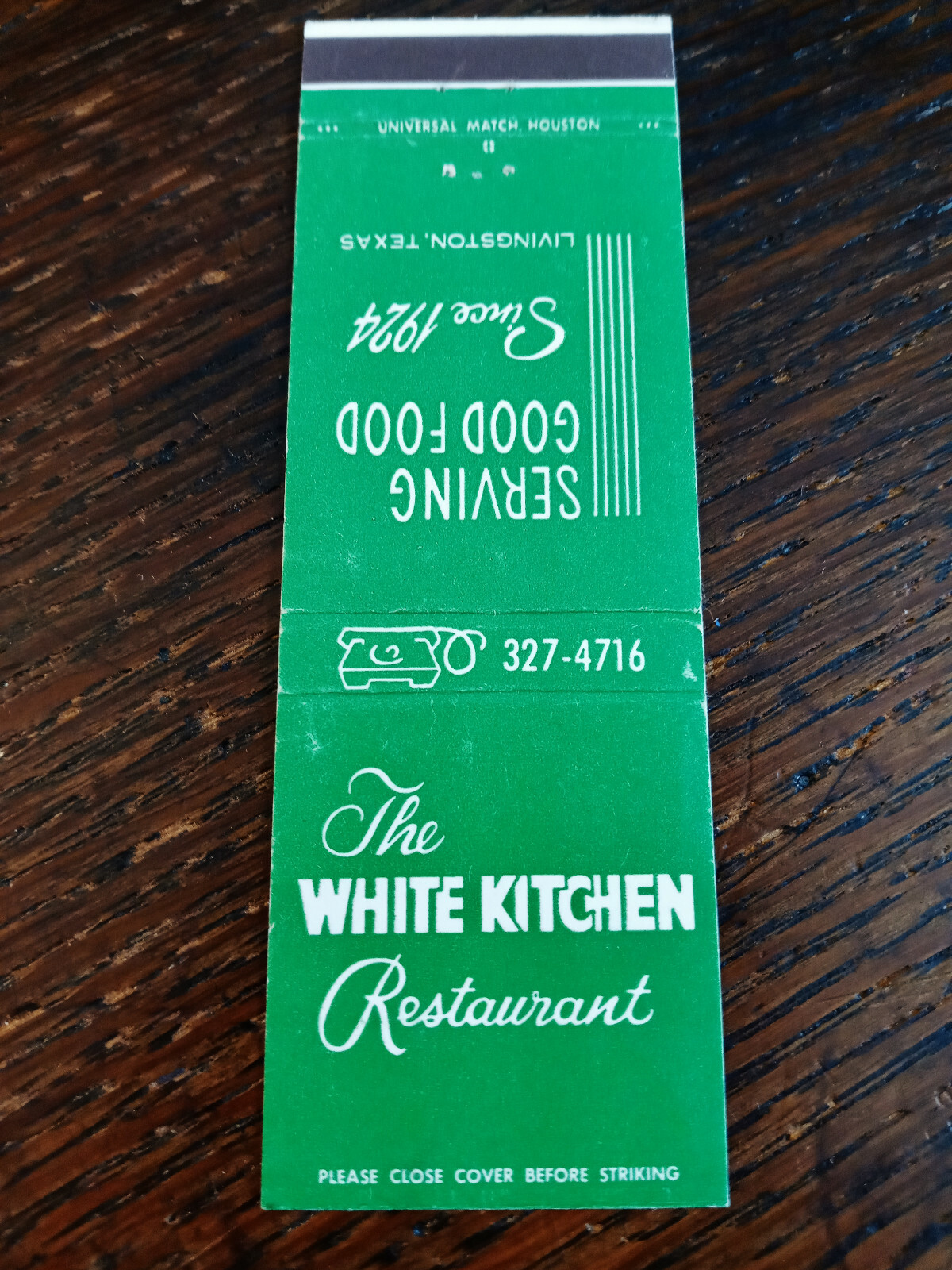Vintage Matchcover The White Kitchen Restaurant Livingston Tx Ebay